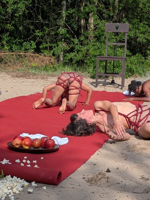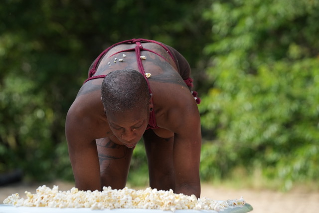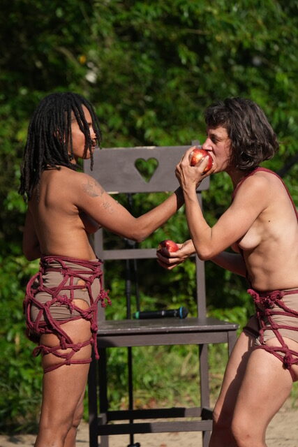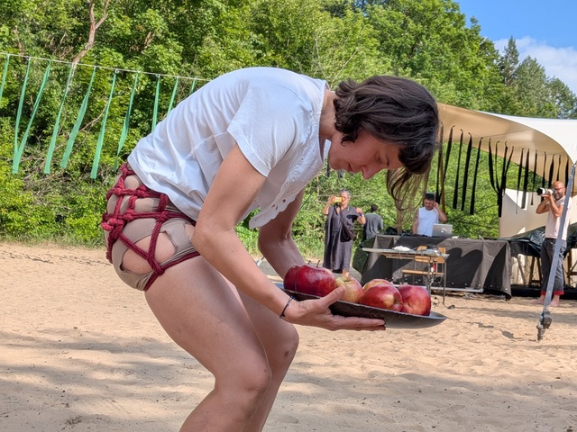 Was essen wir? Was mussten wir schlucken? Machtverhältnisse haben tiefe Bissspuren in unseren Körpern und Beziehungen hinterlassen. Als Fleisch sind wir selbst essbar, eingebunden in mehr-als-menschliche Ökologien, nicht als Herrscher über, sondern als Teil von Natur. Uns durchprobierend und verschlingend gestalten wir eindrückliche Beziehungen miteinander und der Welt, die wir nähren. Was wollen wir ausspucken? Was verdauen, um es in uns zu verändern und in Bewegung zu bleiben?
